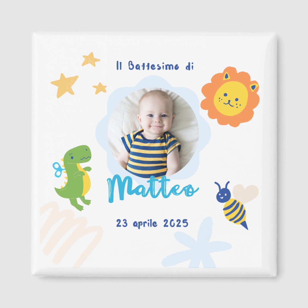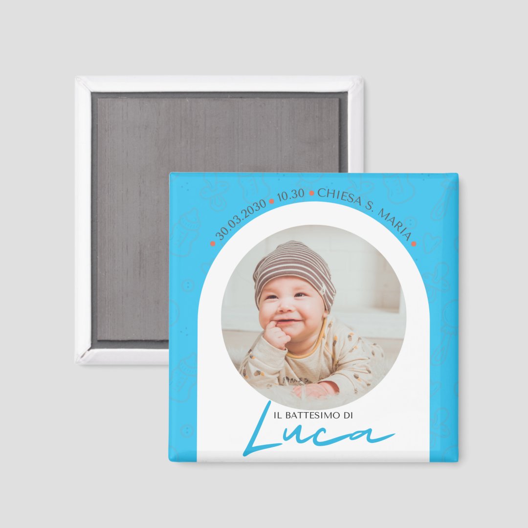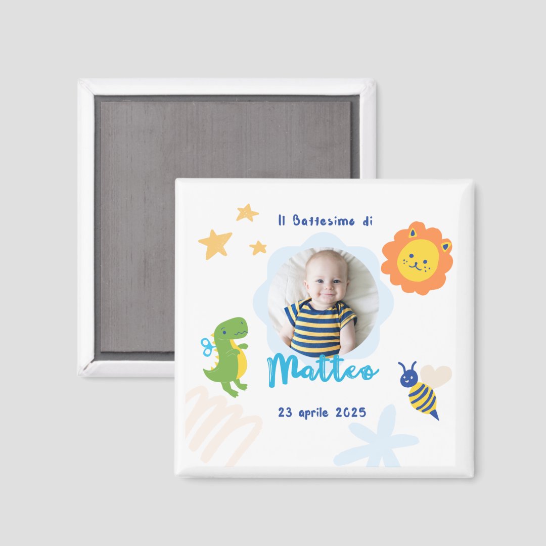 Calamita Bomboniera Personalizzata per Battesimo Bimbo 5x5 cm