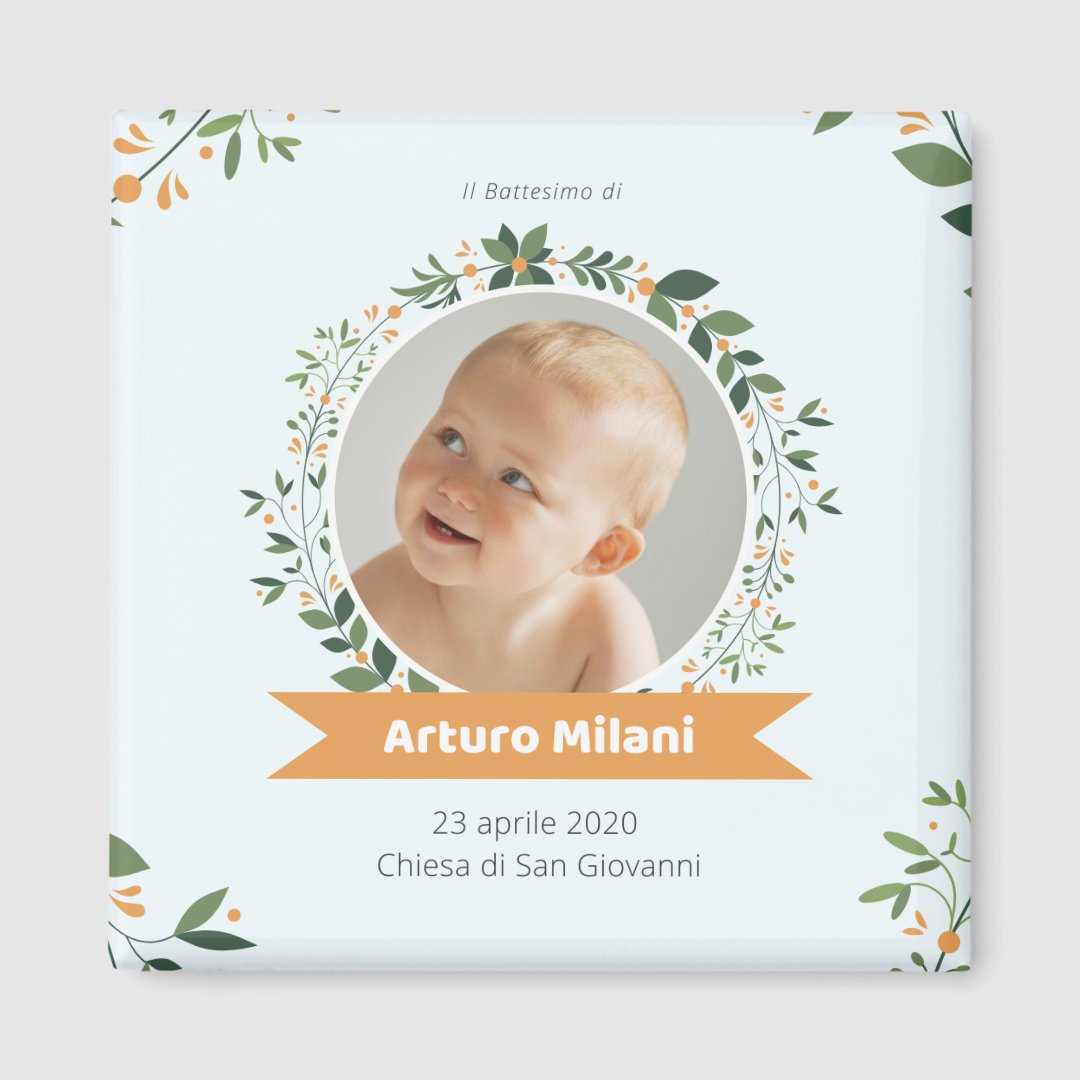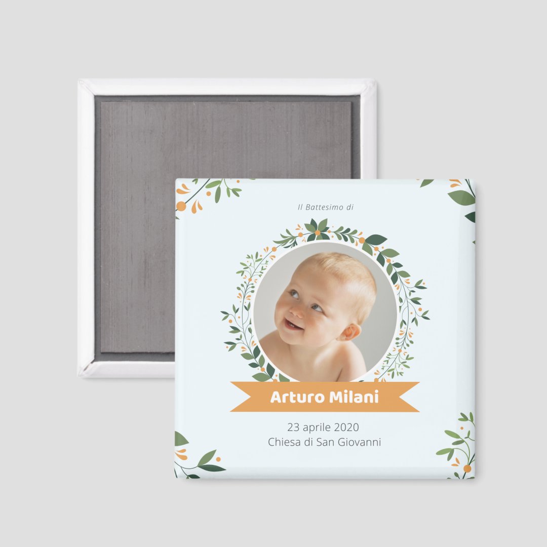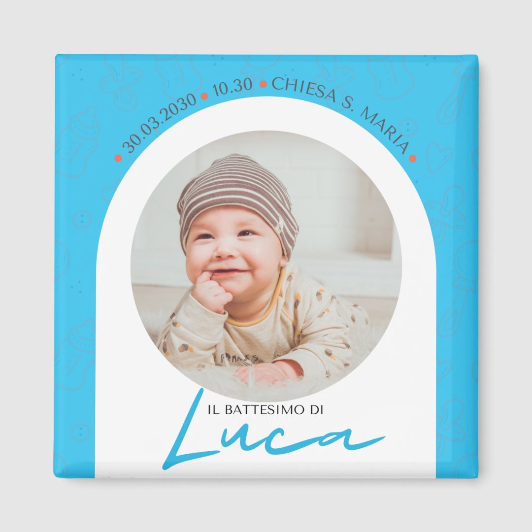 Calamita Bomboniera Personalizzata per Battesimo Bimbo 5x5 cm